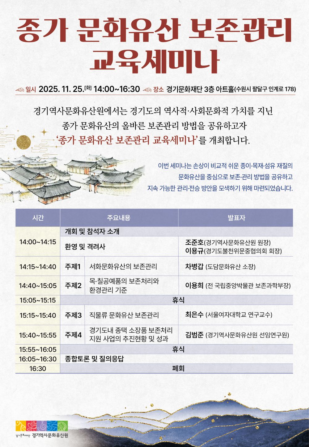 경기도내 종택 소장품 보존처리 지원사업 교육 프로그램